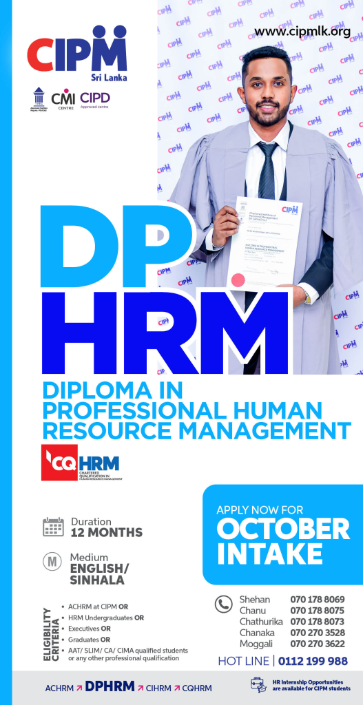 Diploma in Professional HRM Posted on October 10, 2023October 10, 2023 Diploma In HRM : CIPM Sri Lanka : Contact : 0112 199 988 : HRM in Sri Lanka